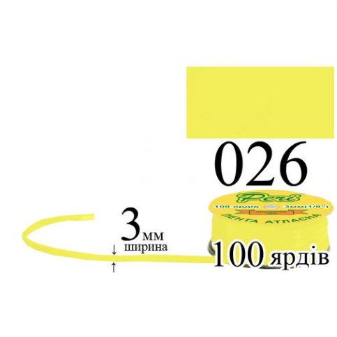 Стрічка атласна 3мм 91,5м 026 Лимон світлий