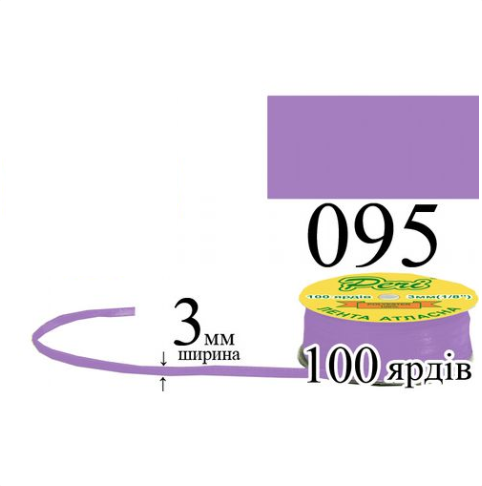 Стрічка атласна 3мм 91,5м 095 Лаванда темний