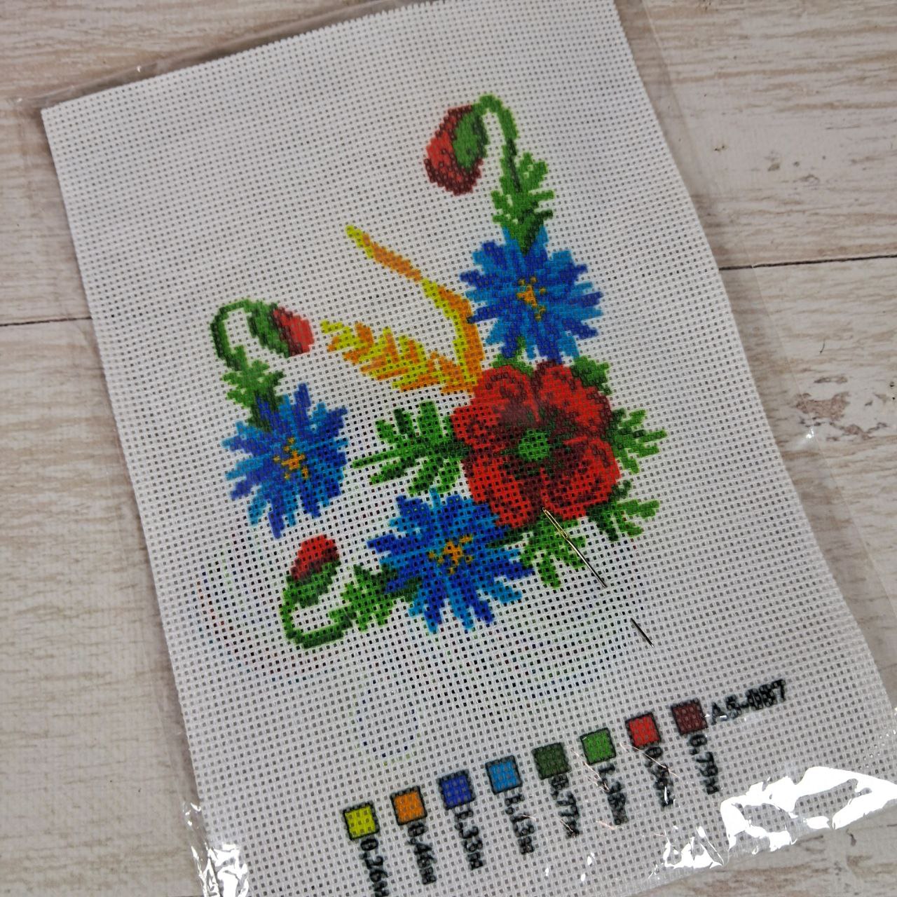 У наборі: канва з нанесеним малюнком + нитки муліне+голка