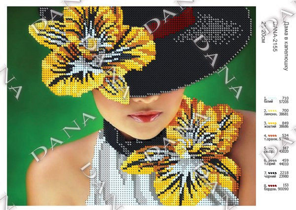 ДАНА-2155 Дама в шляпе, схема под бисер