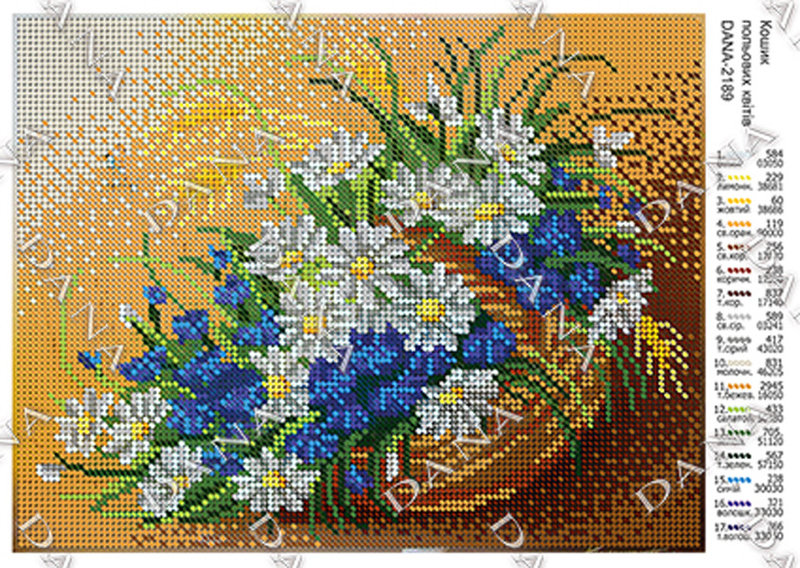 ДАНА-2189 Корзина полевых цветов, схема под бисер