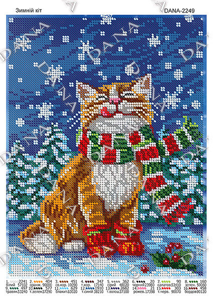ДАНА-2249 Зимний кот, схема под бисер