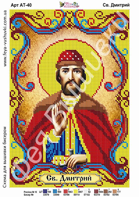 Главная страница » Магазин » Набори та схеми » Фея Вышивки » Фея Вышивки АТ-40 Св. Дмитрий, схема под бисер