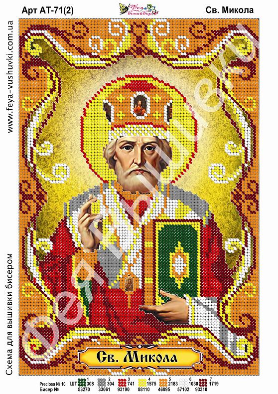 Главная страница » Магазин » Набори та схеми » Фея Вышивки » Фея Вышивки АТ-71(2) Св. Николай, схема под бисер