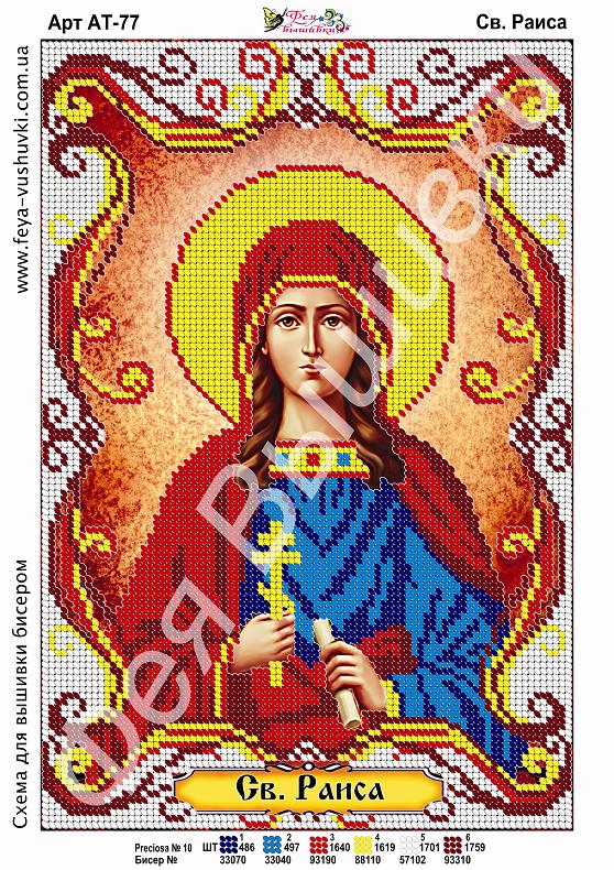 Фея Вышивки АТ-77 Св. Раиса, схема под бисер