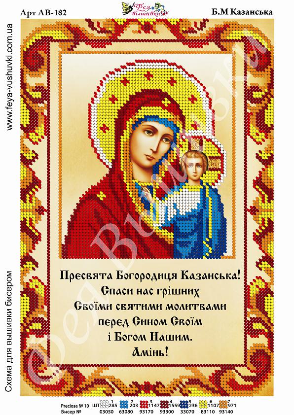 Главная страница » Магазин » Набори та схеми » Фея Вышивки » Фея Вышивки АВ-182 Б. М. Казанская, схема под бисер