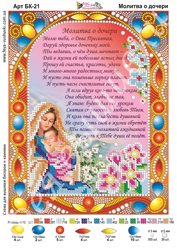 Фея Вышивки БК-21 Молитва о дочери, схема под бисер со стразами