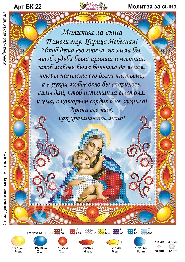 Фея Вышивки БК-22 Молитва за сына, схема под бисер со стразами