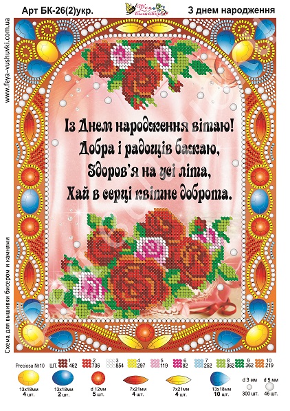 Фея Вышивки БК-26(2) З Днем Народження, схема под бисер со стразами