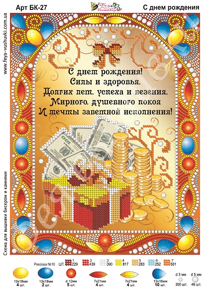Фея Вышивки БК-27 С Днем Рождения, схема под бисер со стразами