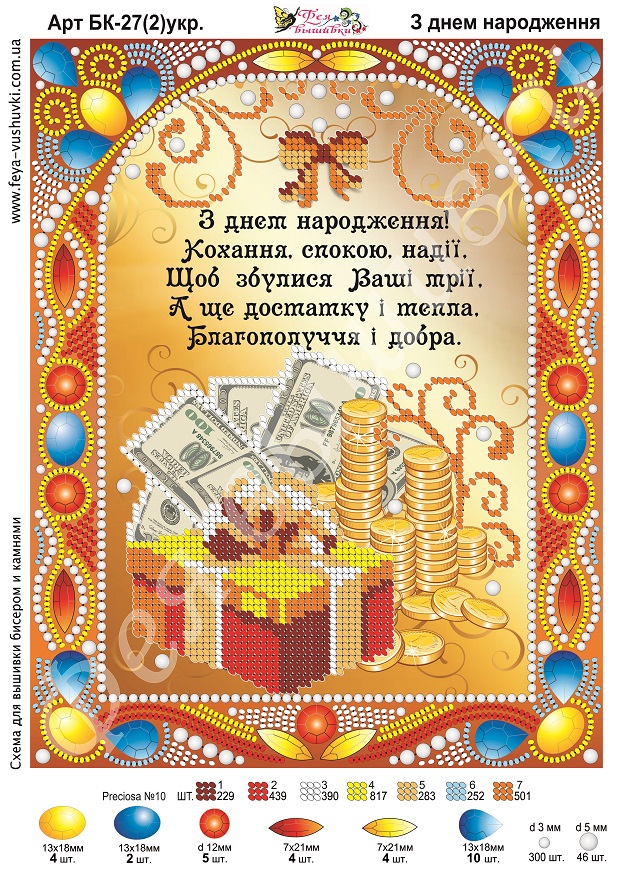 Фея Вышивки БК-27(2) З Днем Народження, схема под бисер со стразами