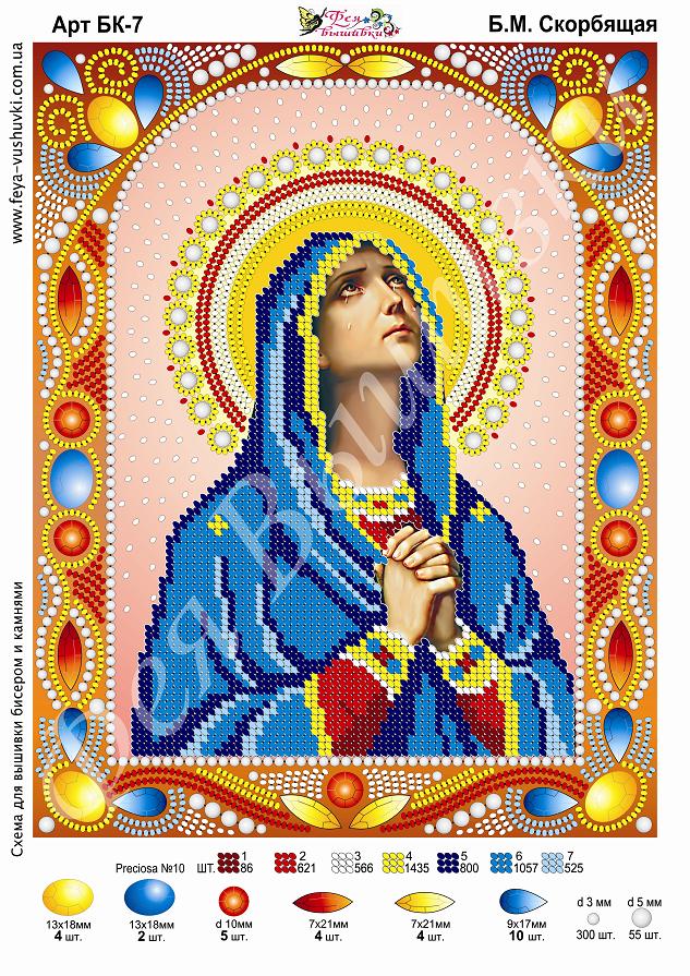 Фея Вышивки БК-7 Б.М. Скорбящая, схема под бисер со стразами