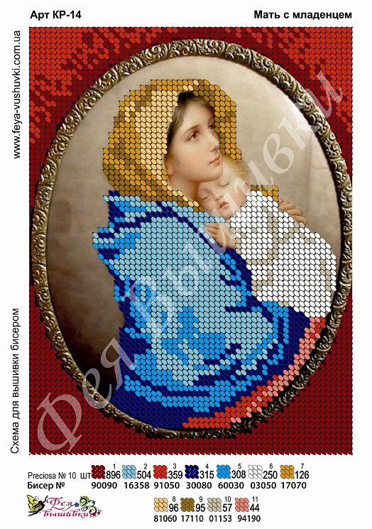 Главная страница » Магазин » Наборы и схемы » Фея Вышивки » Фея Вышивки КР-14 Мать с младенцем, схема под бисер