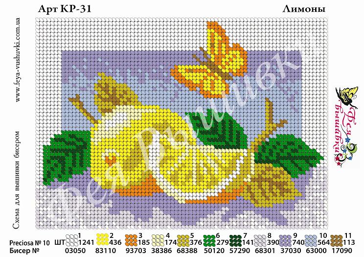 Главная страница » Магазин » Набори та схеми » Фея Вышивки » Фея Вышивки КР-31 Лимоны, схема под бисер