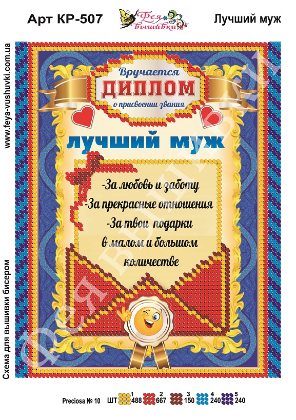 Главная страница » Магазин » Наборы и схемы » Фея Вышивки » Фея Вышивки КР-507 Лучший муж, схема под бисер
