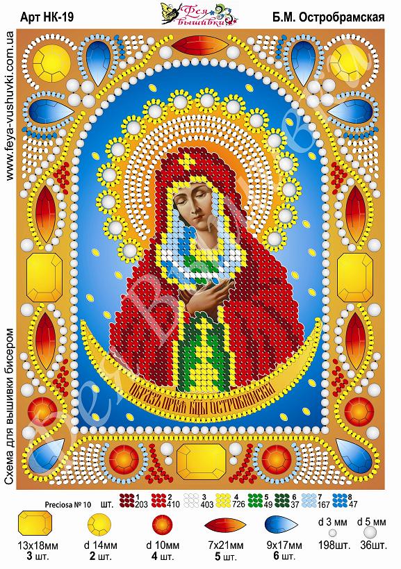 Фея Вышивки НК-19 Б.м. Остробрамская, схема под бисер со стразами