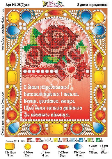 Фея Вышивки НК-25(2) З Днем народження, схема под бисер со стразами