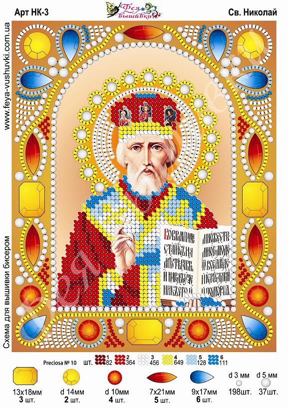 Фея Вышивки НК-3 Св. Николай, схема под бисер со стразами