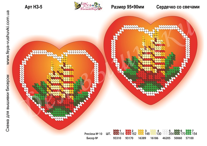 Фея Вышивки НЗЗ5 Сердечко со свечами, схема под бисер