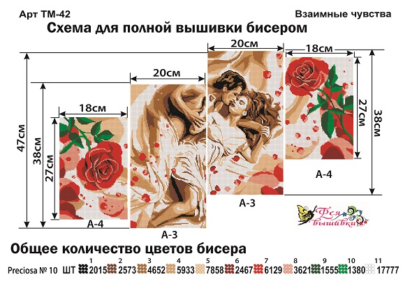 Фея Вышивки ТМ-42 Взаимные чувства. Триптих, схема под бисер
