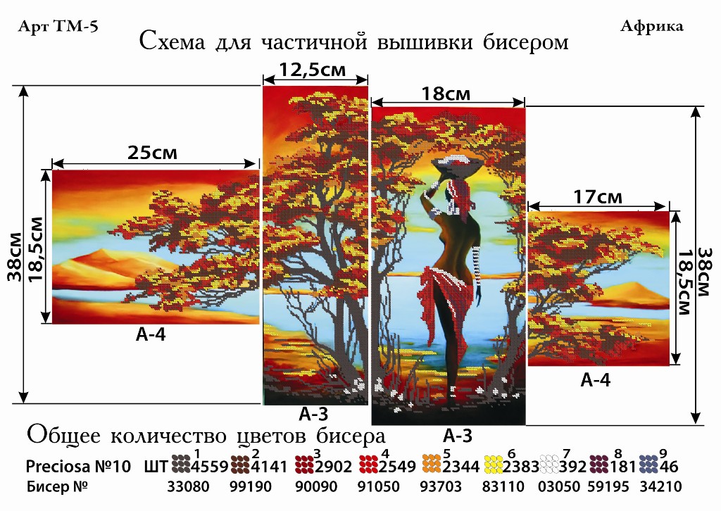 Фея Вышивки ТМ-5 Африка. Триптих, схема под бисер