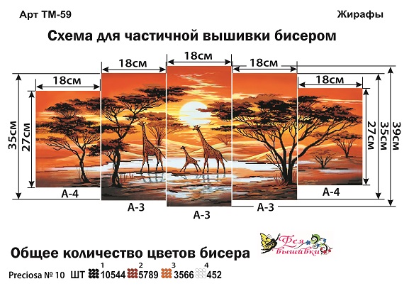 Фея Вышивки ТМ-59 Жирафы. Триптих, схема под бисер