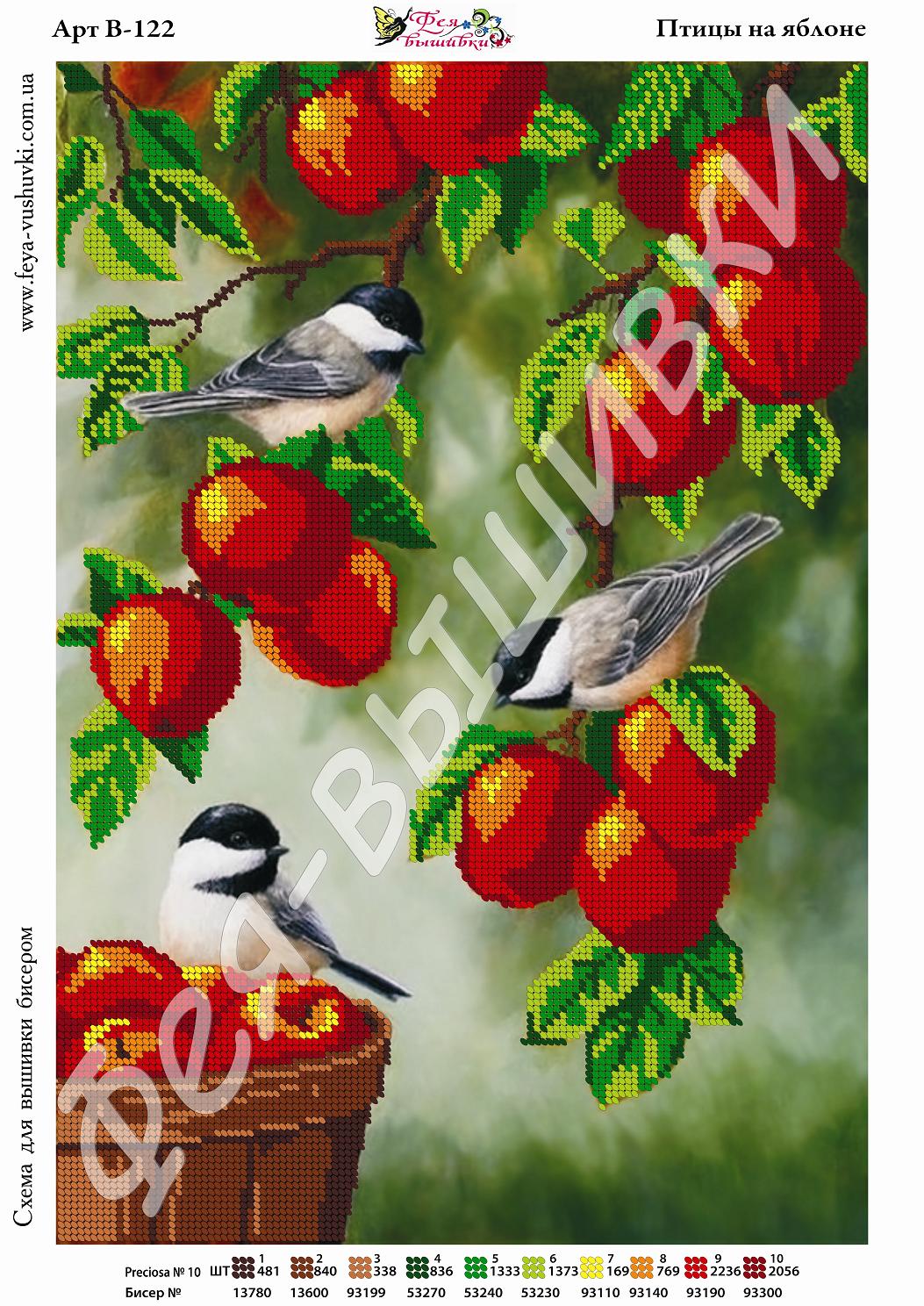Главная страница » Магазин » Наборы и схемы » Фея Вышивки » Фея Вышивки В-122 Птицы на яблоне, схема под бисер