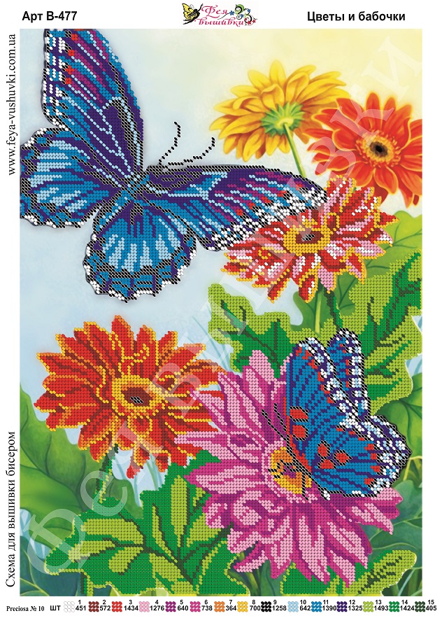 Фея Вышивки В-477 Цветы и бабочки, схема под бисер
