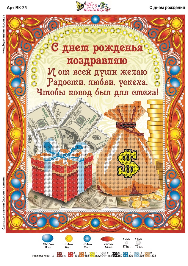 Фея Вышивки ВК-25 С Днем Рождения, схема под бисер со стразами