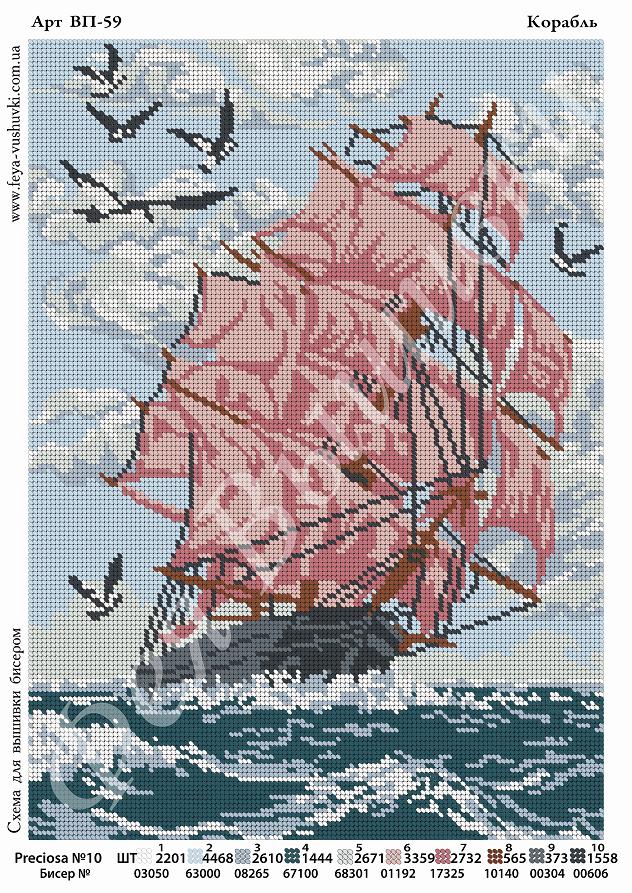 Фея Вышивки ВП-59 Корабль, схема под бисер