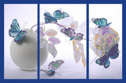 Картины бисером S-088 Бабочки. Триптих, схема под бисер