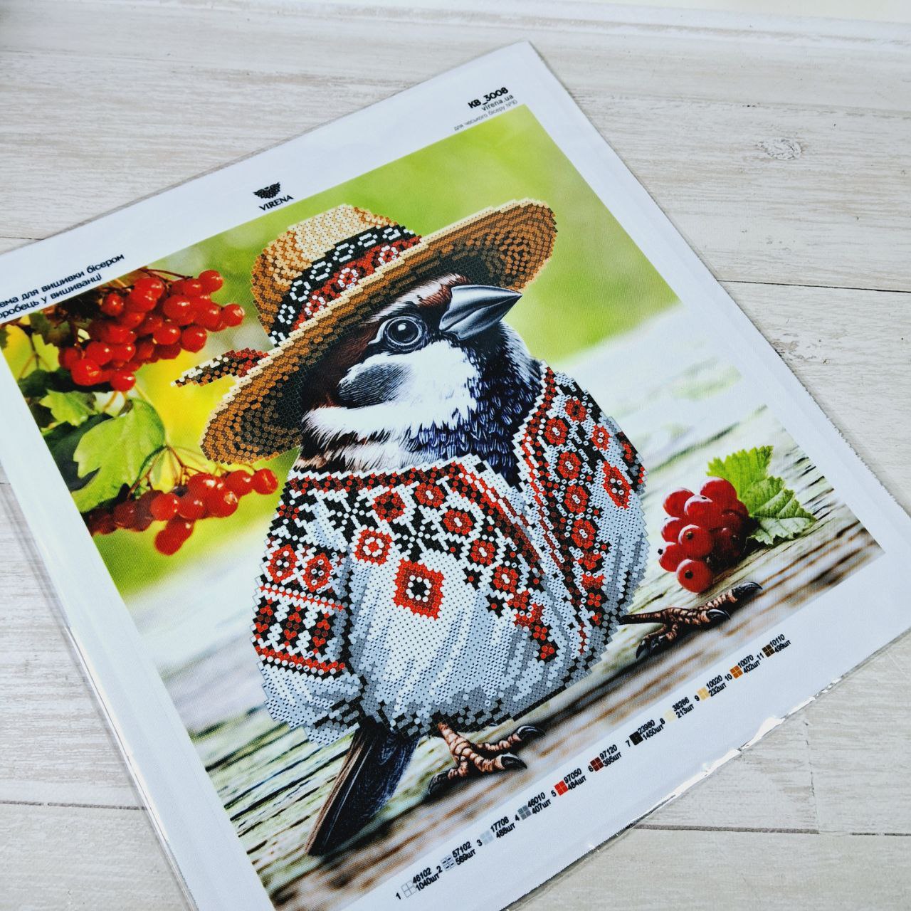 Virena КВ-3008 Горобець у вишиванці, схема для вишивки бісером