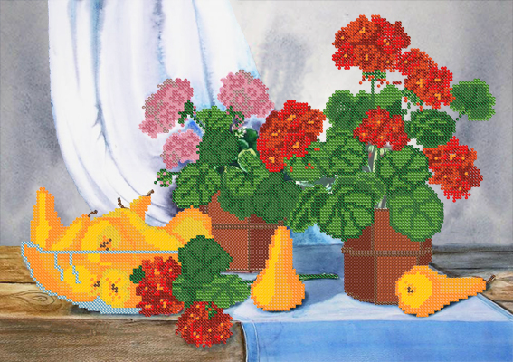 Ткань с рисунком для вышивания бисером, рисунок нанесен на атлас