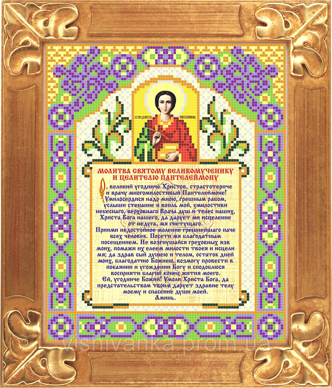 Повна скриня АР1032 Св. Пантелеймон-целитель с молитвой, схема под бисер