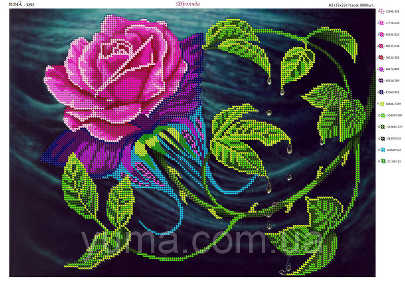 ЮМА 3292 Роза, схема под бисер