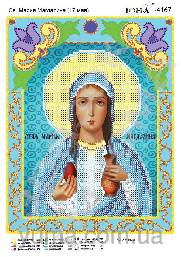 Главная страница » Магазин » Набори та схеми » ЮМА » ЮМА 4167 Св. Мария Магдалина, схема под бисер