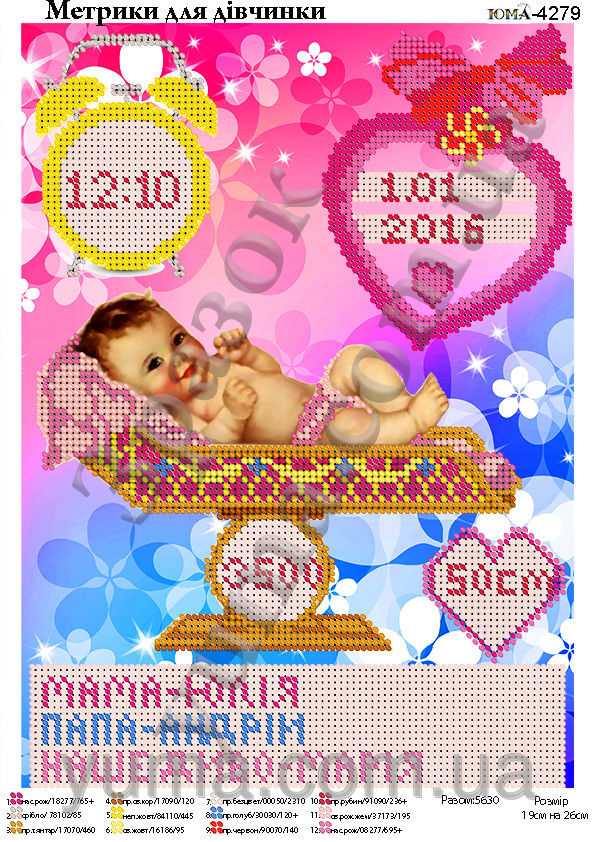 ЮМА 4279 Метрика для девочки, схема под бисер