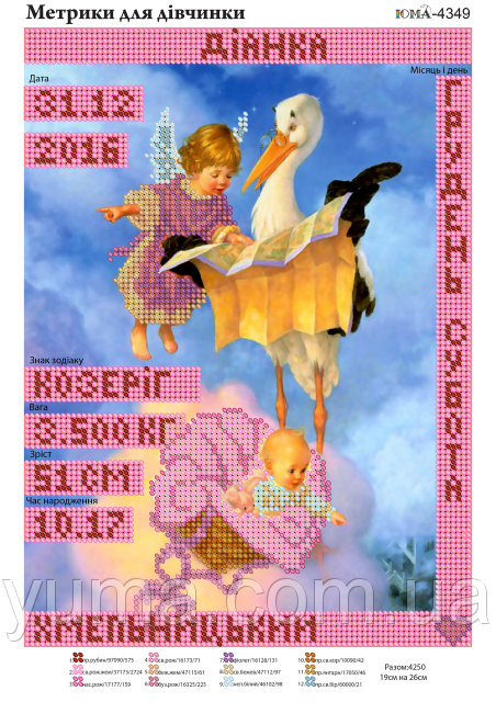 ЮМА 4349 Метрика для девочки, схема под бисер