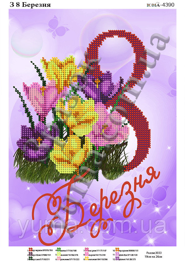 Схема для вышивки бисером на атласе “З 8 Марта” для удобства вышивания подклеена двумя слоями флизелина а сам атлас благодаря своим свойствам предаёт схеме характерный блеск который будет радовать взгляд. Размер 19 см. на 26 см.
