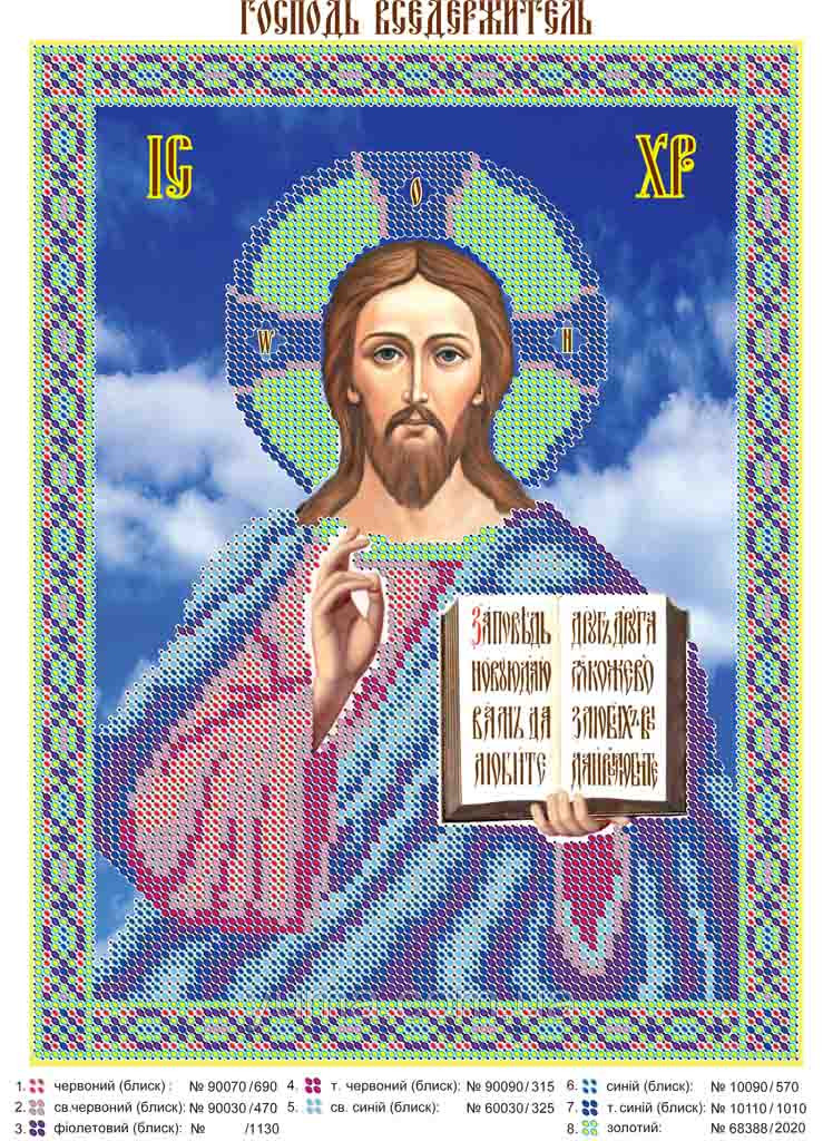 “Господь вседержитель” схема для частичной вышивки бисером, размер 19 на 25,5 см, материал атлас