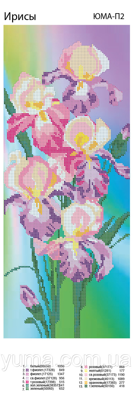 Купить оптом схемы (заготовки) для вышивки бисером (рекомендовано чешским №10) картин на висококачественном АТЛАСЕ “Панно ИРИСЫ” для удобства вышивания схема подклеена двумя слоями флизелина.