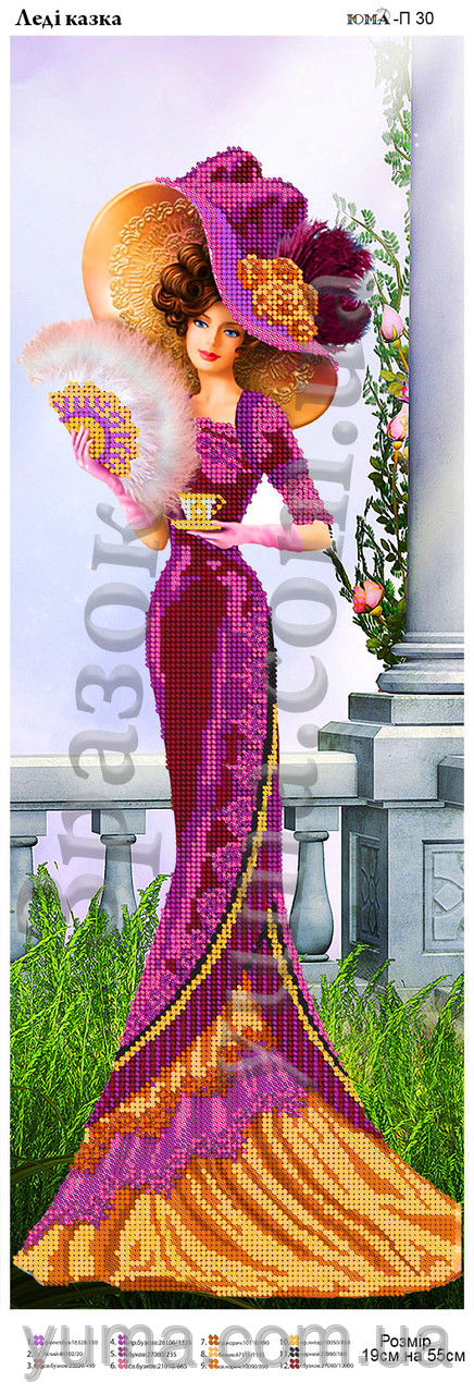 Размер зашивки 55 на 19 см. плюс поля которых достаточно для фиксации схемы в пяльцы и потом и в раме.Рекомендовано вышивать чешским бисером :№ 10 все схемы для вышивки подклеены двумя слоями флизилина.