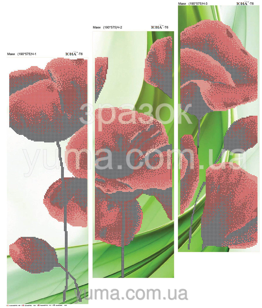 ЮМА Т-6 Маки. Триптих, схема под бисер