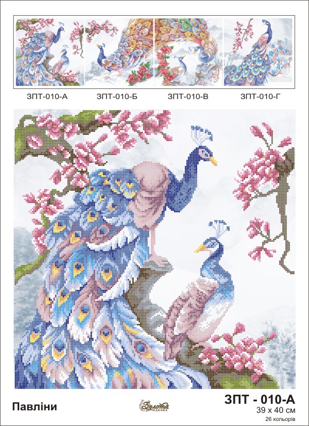 Золотая подкова ЗПТ-010а Павлины, схема под бисер