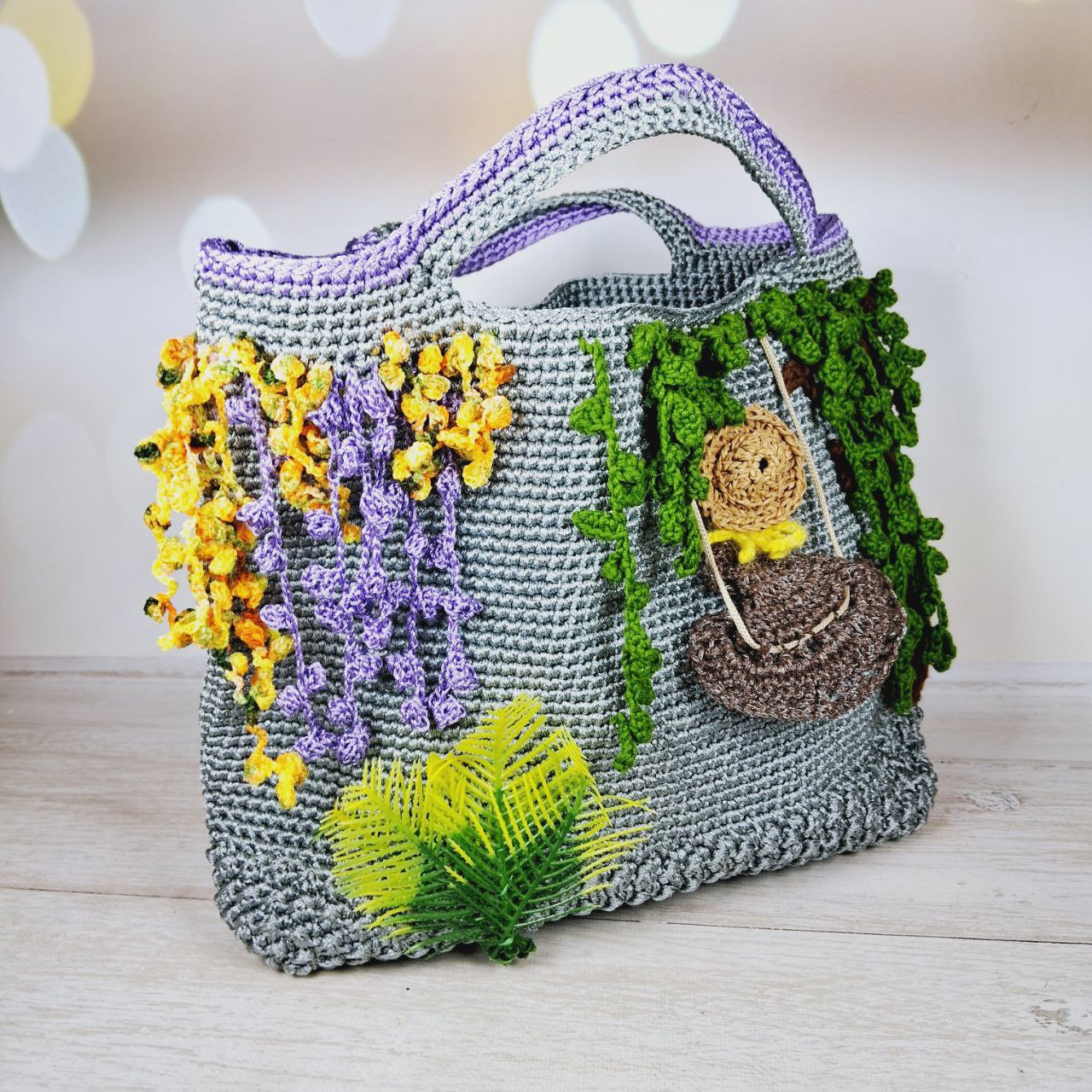 Главная страница » Магазин » Пряжа » В'язані вироби » Сумка в’язана 33*27см сiра фантазiйна