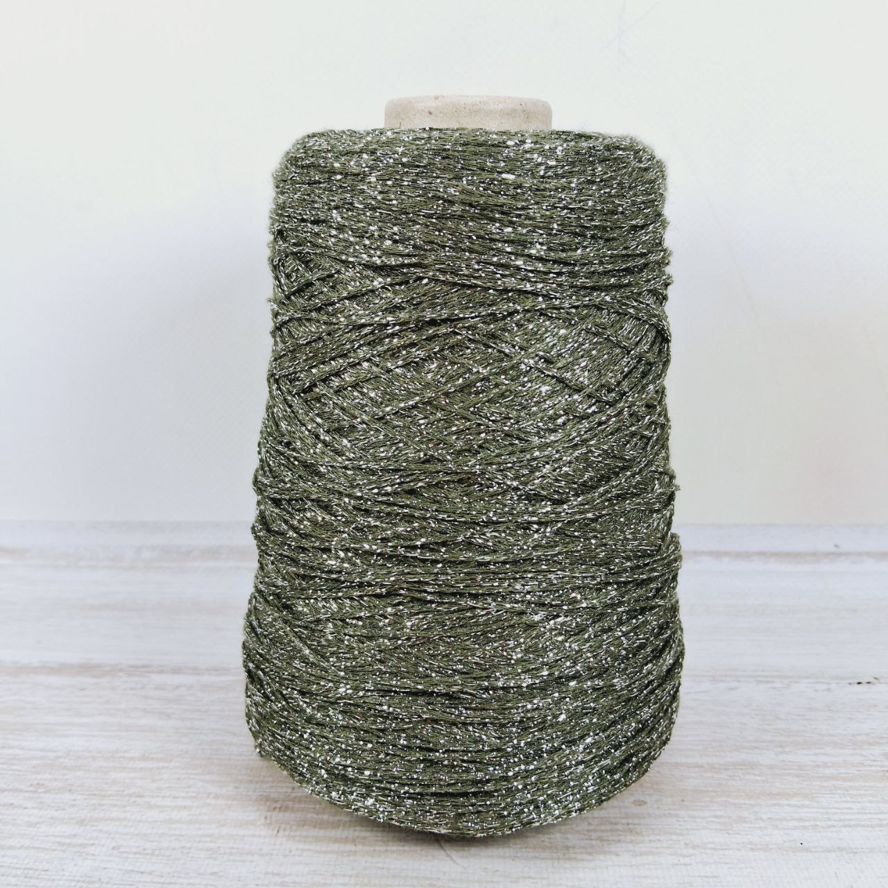 Пряжа Pecci Filati SpA Strass 100г/500м оливка з срібним люрексом