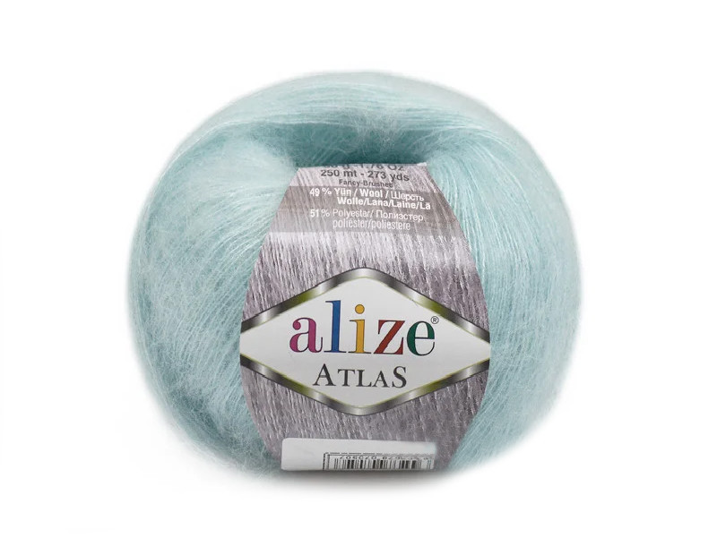 Alize Atlas – тоненька як павутинка та повітряна як хмара, з вовняною структурою та шовковистим, мерехтливим виглядом.