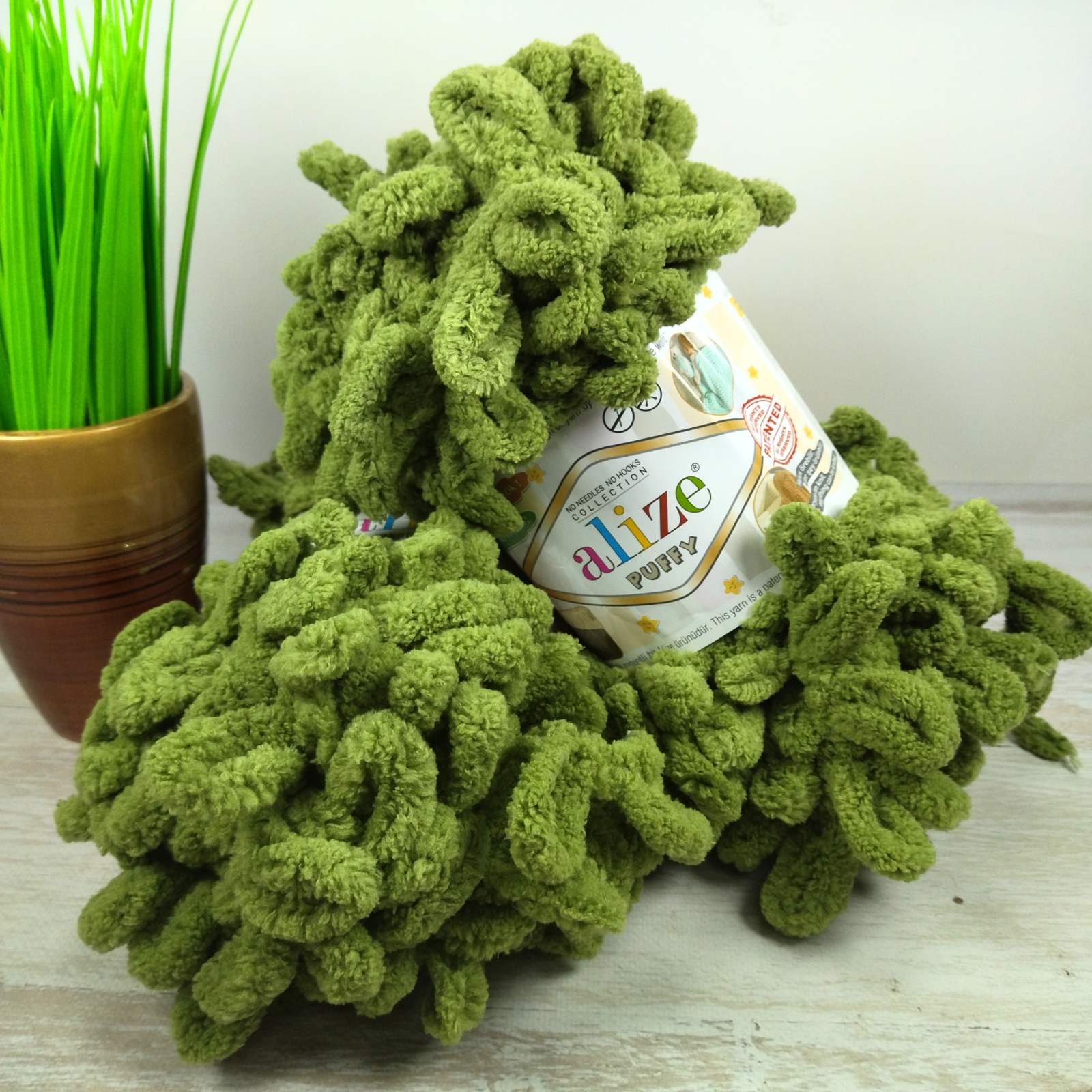 Алізе Пуффі (Alize Puffy) 100г/9,5м 485 зелена черепаха