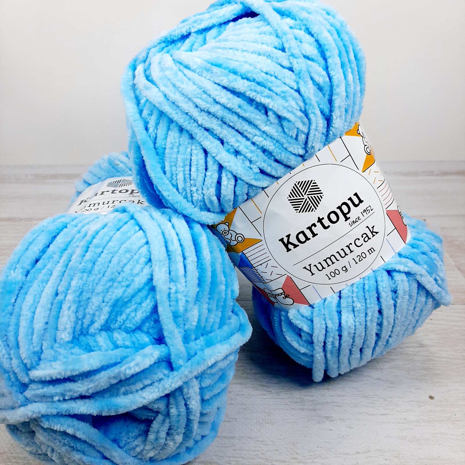 Kartopu Yumurcak (Картопу Юмурчак) – чудова плюшева пряжа секційного забарвлення для ручного в’язання від турецького виробника Kartopu.