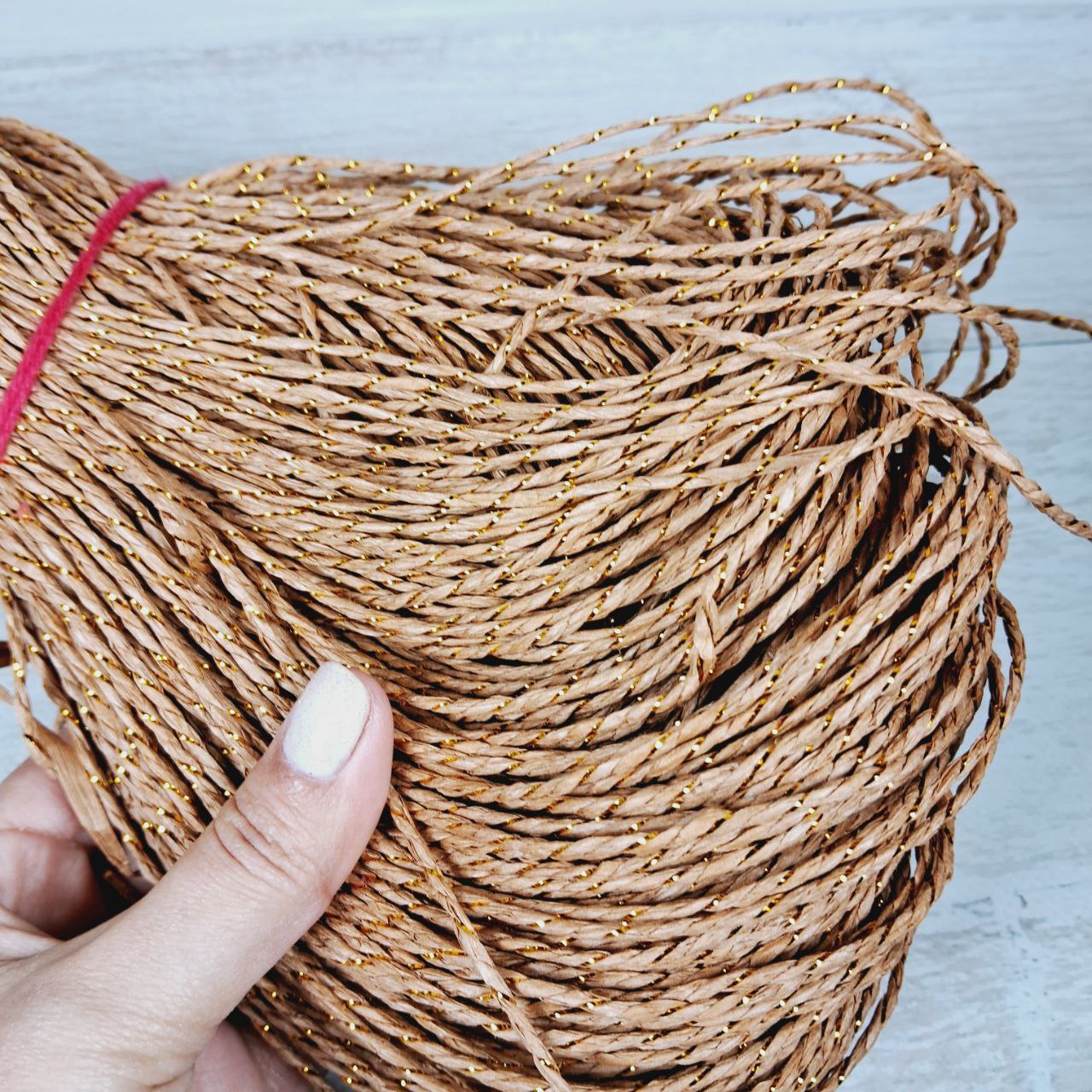 Рафія соломка пасмо 200-400г вагова люрекс темно-бежевий з золотом